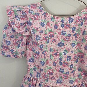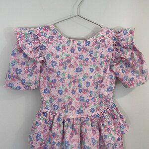 Vintage 80s/90s Floral Party Dress Girls L Pink Ruffle Easter Wedding Girly EUC