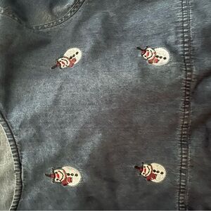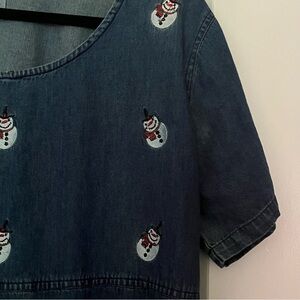 Vintage 80s/90s Jane Ashley Denim Snowman Embroidered Maxi Dress