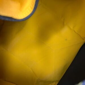 Great vintage pre-owned condition. There are a couple of light marks, 1 or 2 pulls. Graphic on one side is a little more faded. Small black mark on inside (see pics).