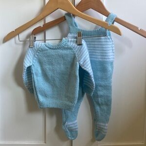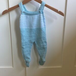 This was my brothers as a baby. Born 1980. My mom lovingly kept this stored all these years. She estimates this fit him around 4-5months. Feel free to request measurements. Great condition except for one little snag on the knee from Velcro (pictured). Laundered and laid flat to dry. Ready for the next little one.
