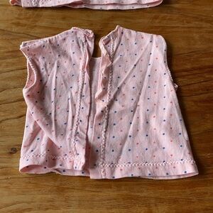 This is a 2 pc listing. The little shirt with a back opening and the little cardigan that goes on top. FYI- there is only one ribbon at the back of the shirt, looks like you would have to reattach a new one.