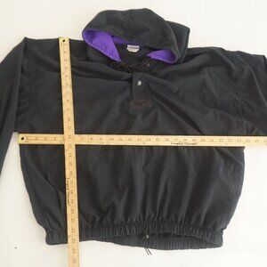 Vintage '90S Asics Black Purple Nylon Hooded Pullover Windbreaker Jacket Large