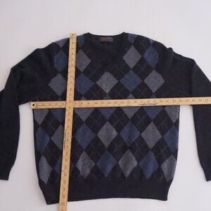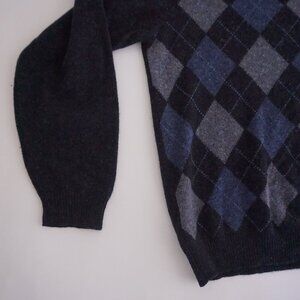 Vintage '90S Brooks Brothers Navy Argyle 100% Lambswool V-Neck Knit Sweater L