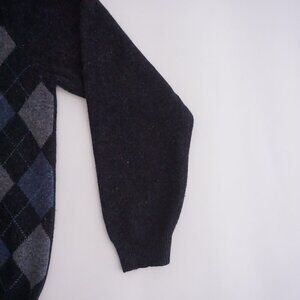 Vintage '90S Brooks Brothers Navy Argyle 100% Lambswool V-Neck Knit Sweater L