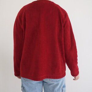 Add a dose of nostalgic holiday charm to your winter wardrobe with this Vintage '90s Carroll Reed Maroon Embroidered Winter Snowman Zip-Up Sweater. Featuring whimsical embroidered snowmen, snowflakes, and festive accents, this cozy knit perfectly captures the playful spirit of the season. The rich maroon color adds a warm, wintry touch that pairs effortlessly with denim, leggings, or holiday skirts.