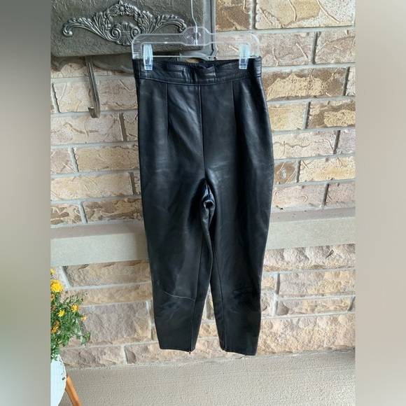 Vintage 90’S DANIER Black Leather Pants High Waisted Fitted Women’s Size 22” XXS