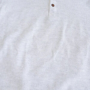 Model is 5'9, 170lbs, average shirt size medium, waist 32", inseam length 30". Just like to disclose its pre-owned / pre-loved. Note left arm has mark, fraying near third button.
