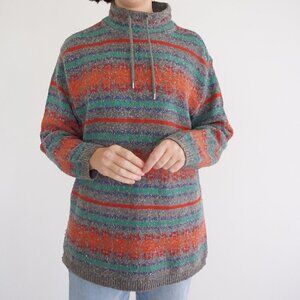 Vintage '90S Lizwear Grey Knit w Red Green Cotton Blend Mockneck Sweater M