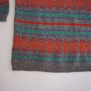 Vintage '90S Lizwear Grey Knit w Red Green Cotton Blend Mockneck Sweater M