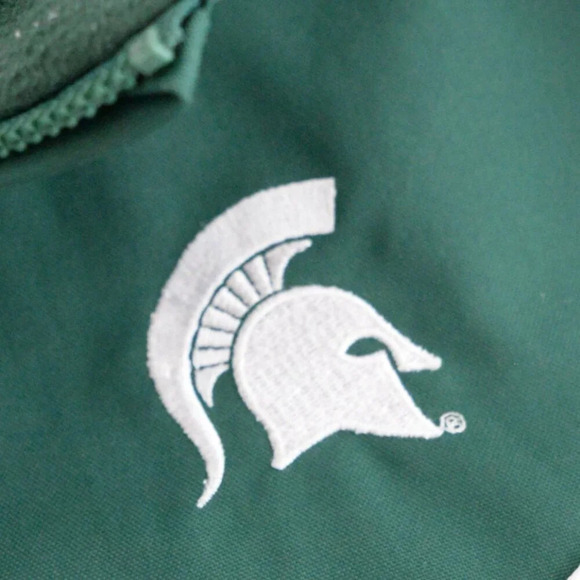 Vintage 90S Russell Athletic Green & White 100% Nylon Lined Zip Up Sports Jacket