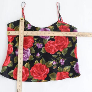 Vintage 90'S Victoria's Secret Black & Red Floral 100% Silk Cami Tank Top S