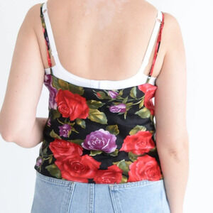Vintage 90'S Victoria's Secret Black & Red Floral 100% Silk Cami Tank Top S