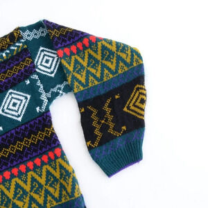 Crafted from soft knit fabric, this crewneck sweater offers both warmth and versatility. The eclectic pattern, reminiscent of a grandpa's favorite sweater, adds character and charm to any outfit. Whether you're pairing it with jeans for a casual look or layering it over a dress for a quirky twist, this sweater is sure to make a statement.