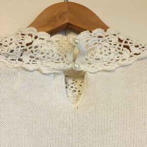 Vintage 90s 100% Cotton Cottagecore Mock Neck Lace Sweater