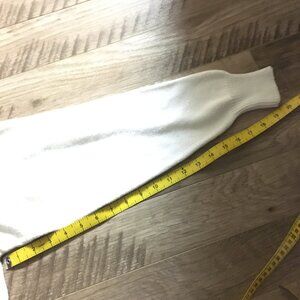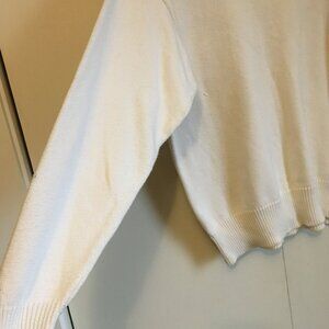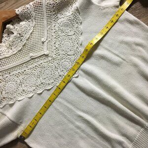 Very good preowned vintage condition, off-white, oversized, mock neck knit sweater with crochet lace by Jessica. 100% cotton. It's a very subtle offwhite/cream. Has a drop tail hem and is slightly longer in the back than the front. Gorgeous, modern, chic piece that's a perfect staple for all those cool months in Canada. Slight stain on pits, can be taken out over time. I have already reduced it, but can keep going. Too unique a piece to abandon.