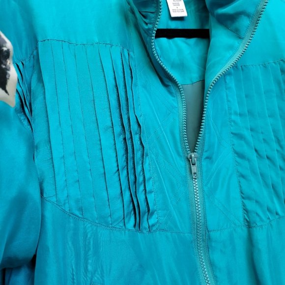 Vintage 90's 100% Silk Bright Turquoise Full Zip Retro Athleisure Jacket