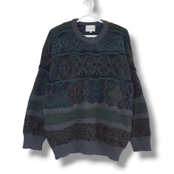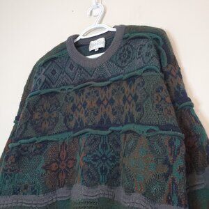 Vintage 90s 3D Knit Patterned Chunky Sweater Green Size L