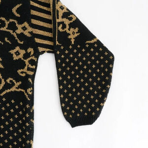 Vintage 90s Alfred Dunner Black w Metallic Gold Floral Mockneck Sweater L