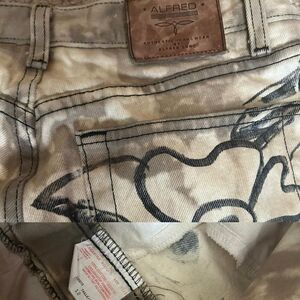 Hand drawn sketches with black sharpie markers. Size 12 Measurements waist 15” taken flat inseam 32.5” hips 20.5” rise 12.5” 100.% cotton