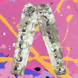 Vintage 90’s Alfred Sung high waisted jeans /bleached jeans / one of one / floral , old skool, choose yourself hand drawn / denim hand drawn by Jnita / choose yourself