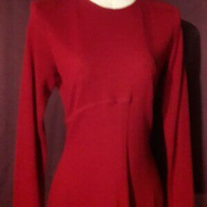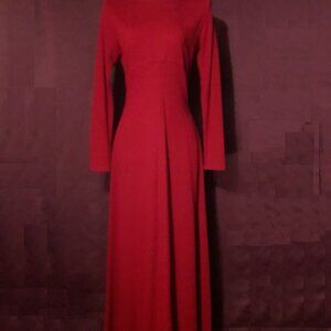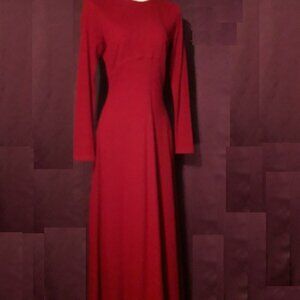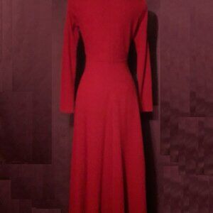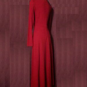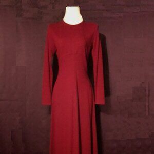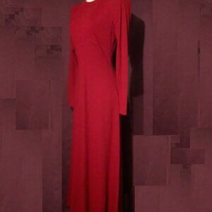 This vintage 90s Ann Taylor full-length maxi dress is crafted from 100% merino wool and features a classic crew neck, long sleeves, and a zip closure for easy wear. The solid red colour adds a pop of colour to your winter or fall wardrobe, while the luxurious merino wool fabric ensures comfort, warmth and style.