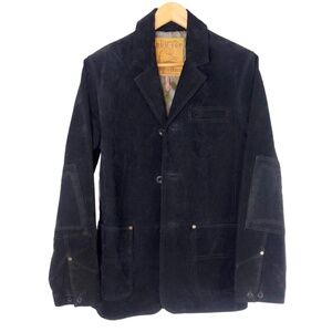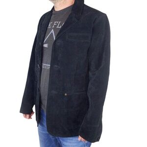 Vintage 90s B.U.M. Equipment Men’s Black Suede Jacket Coat Elbow Patches