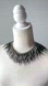 Statement necklace with a metallic flame feather-like design in silver and black tones.