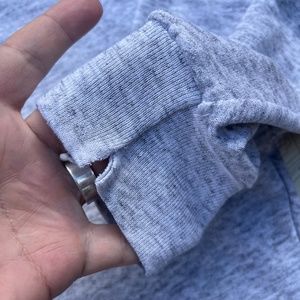 Vintage holiday sweatshirt made by Basic Editions. Bear catching snowflakes - so cute! Double collar. Shows wear, one cuff has tear, maybe a discoloured spot at bottom corner of graphic - see photos. Tag with size and material has faded. Measures 30" across shoulders, 27" pit to pit, 13" sleeve, 25" long.