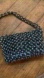 Vintage 90s Beaded Micro Mini Bag Silver & Black Evening Purse Formal Whimsigoth