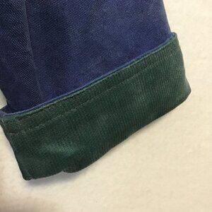 The inside corduroy/denim side of the jacket is missing a wooden button as shown in pics. Please refer to measurements for potential fit.