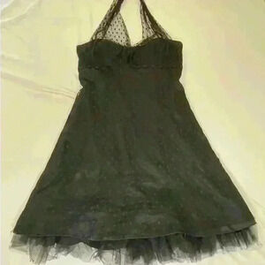 Vintage 90’s Betsy & Adam Halter Black Polka Dot Tulle Midi Gothic Style Dress