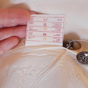 Good, clean vintage condition. Only callout is a faint shadow of a removed stain on the front right side pocket, and a couple of small marks on the inner lining ( see photos).