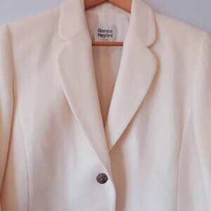 Beautiful vintage wool & cashmere blazer with a full nylon lining. In a warm cream shade, two buttons down the front, a button on each cuff and two front pockets. Comes with two extra buttons.