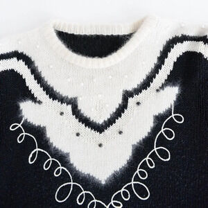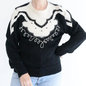 Vintage 90's Black & Cream Knit w/ Pearls CrewNeck Sweater