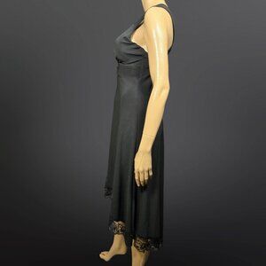 Vintage 90s Black Dress Size M Silver Buckle Lace Trim Witchy Goth Prom Party