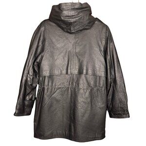 vintage leather jacket, y2k black outerwear, 90s oversized parka, hooded leather coat, grunge moto jacket, genuine leather jacket, streetwear winter coat, black utility jacket, edgy leather outerwear, minimalist goth coat, vintage zip up jacket, oversized leather coat, 90s street style