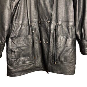 Vintage 90s Black Leather Coat, Quilted Lining, Genuine Leather, Oversized Parka