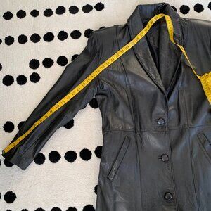 Vintage 90s Black Leather Trench Coat Retro Maxi Long Length Jacket Overcoat