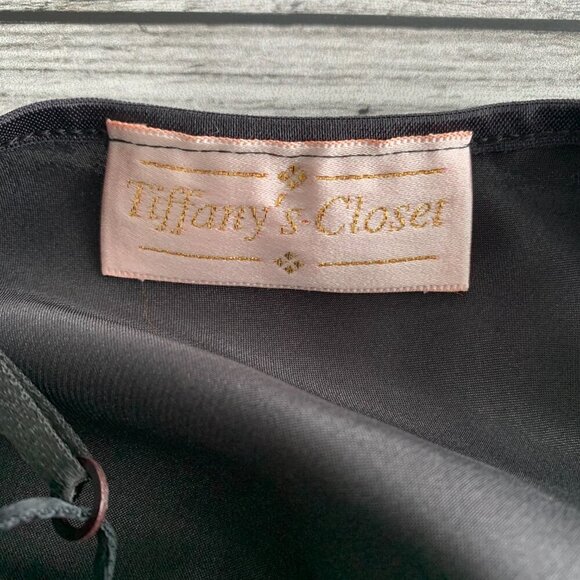 Elevate your wardrobe with the VTG 90s Maxi Dress, a timeless piece that exudes a unique blend of witchy dark fairy and gothic charm. This medium-sized, black satin lingerie slip dress from Tiffany's Closet features an alluring V-neckline and a sleeveless design, ideal for any formal occasion or a sophisticated night out. Its asymmetric ruffle hem adds a touch of whimsy, while the sheer polyester fabric offers a tantalizing peek of skin. Crafted in the United States, the dress is fully lined for comfort and features exquisite beaded accents that catch the light beautifully. The dress's versatility is mirrored in its suitability for a variety of occasions, from parties and weddings to a stylish travel adventure. With its solid pattern and elegant strappy sleeves, this dress is a must-have for those who appreciate a blend of classic style and quirky character. EUC