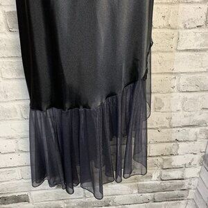 Vintage 90s Black Satin Asymmetric Sheer Ruffle Hem Maxi Slip Dress