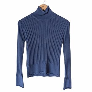 Vintage 90s blue ribbed chunky knit turtleneck sweater. Soft cozy. Good condition, 10/10. Wear with high waisted jeans, joggers, shorts or skirt for a 90s look.