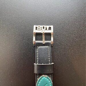 Timeless style with the 90's Boy London wristwatch, a quintessential accessory for those who appreciate vintage flair combined with classic design. Its round, silver stainless steel case measures 35 mm, complemented by a matching bezel and a polished finish powered by a reliable quartz movement.