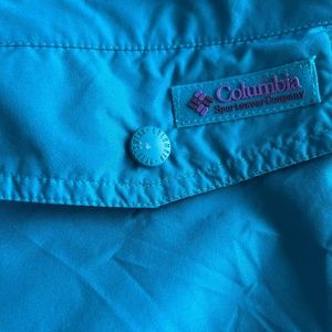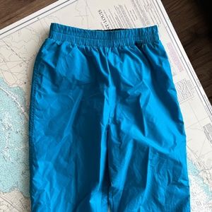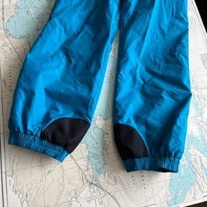 Vintage 90s bright blue waist high snow / ski pants made by Columbia. Excellent condition, only sign of wear is a white scuff on the button of rear pocket (see photos). Adjustable elastic waist and cuffs. Tagged as a size medium, measures 12.5" across (elastic) waist, 21.5" hips, 13.5" rise, 29.5" inseam, 6.5" (elastic) cuff.