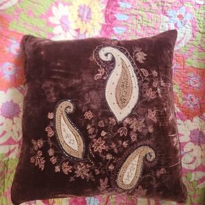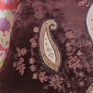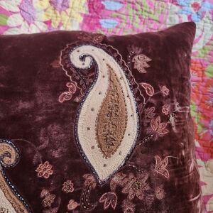 Vintage 90s Brown Velvet Paisley Beaded Down Filled Pillows Home Decor Boho