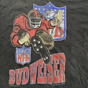Vintage 90s Budweiser NFL Distressed T Shirt Size XL Black C.G.W 1993