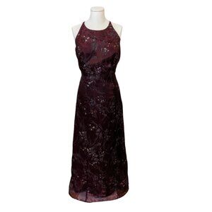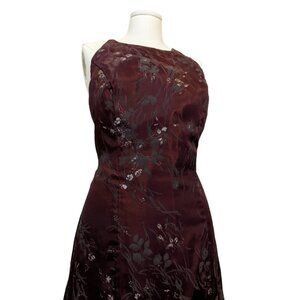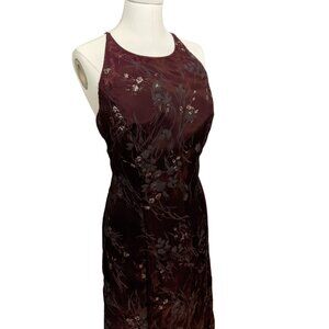 Vintage 90s Burgundy Dress Prom Formal Silver Floral Whimsygoth Witchy Sz 10