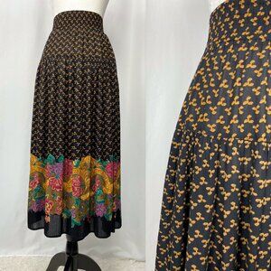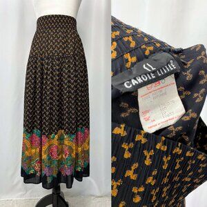 Vintage 90s Carole Little black floral broomstick witchy maxi skirt small