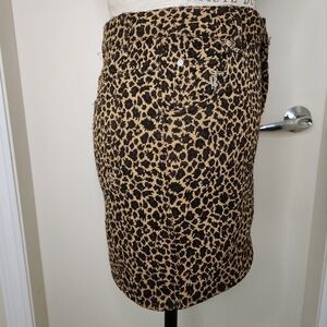 Textured Black Tan & Gold Leopard Cheetah Print Classic 5 Pocket Denim Style Mini Skirt with Branding details, by STUSSY.