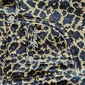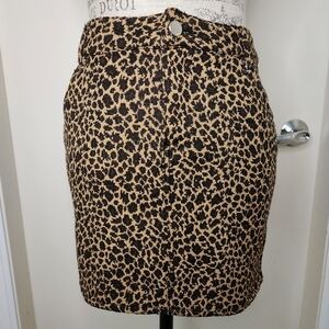Textured Black Tan & Gold Leopard Cheetah Print Classic 5 Pocket Denim Style Mini Skirt with Branding details, by STUSSY.
