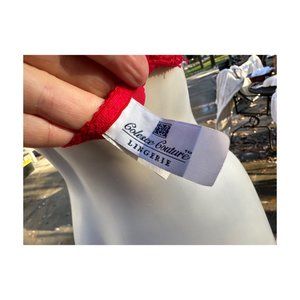 Vintage 90s Colesce Couture Lingerie Demi Cup Bra Red Lace Made in USA Sz 36C